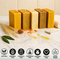 Each bar is handmade using traditional cold-press methods and cured naturally. Variations in shape and texture are part of its handmade charm.